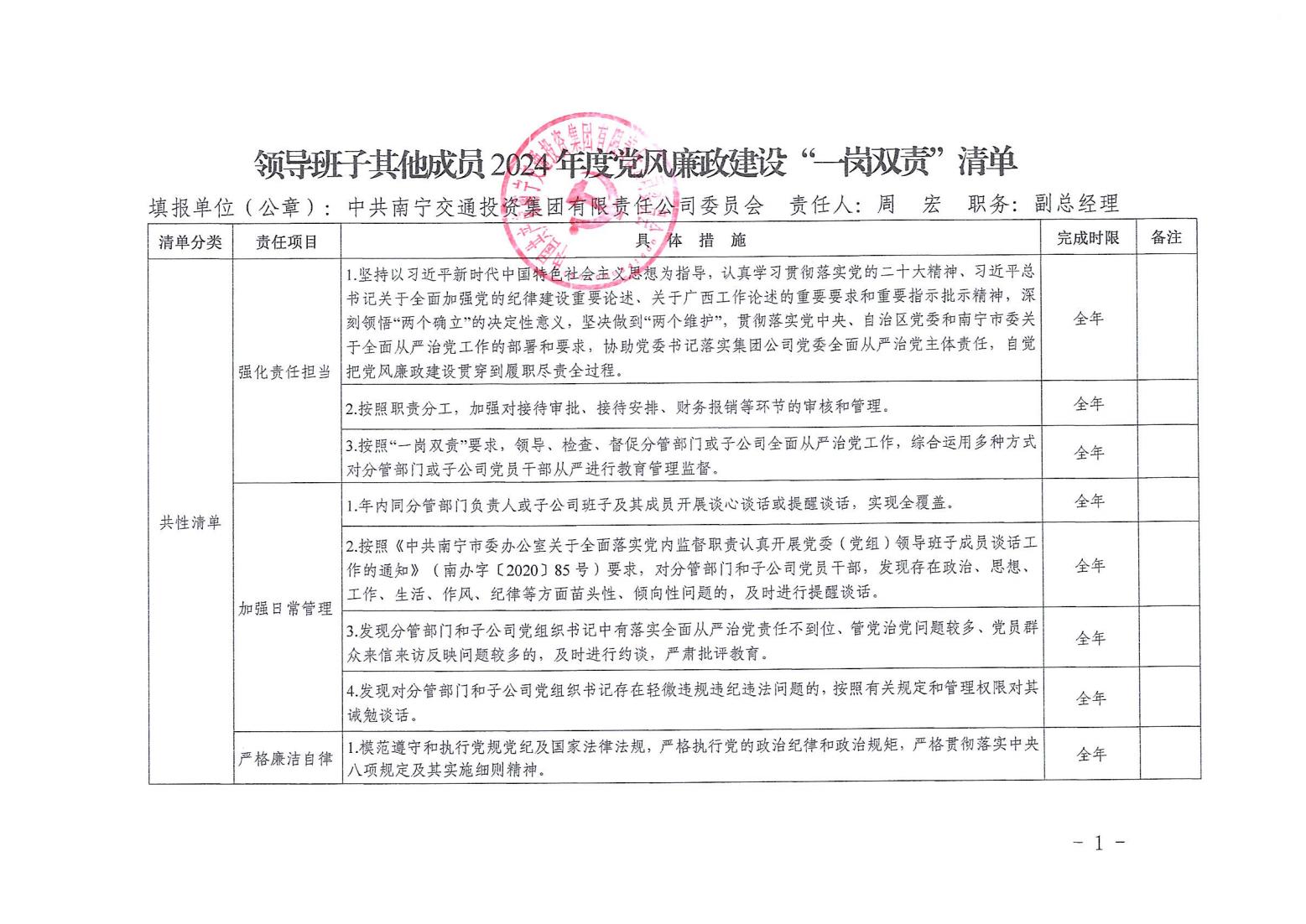領(lǐng)導(dǎo)班子其他成員2024年度黨風(fēng)廉政建設(shè)“一崗雙責(zé)”清單(五)