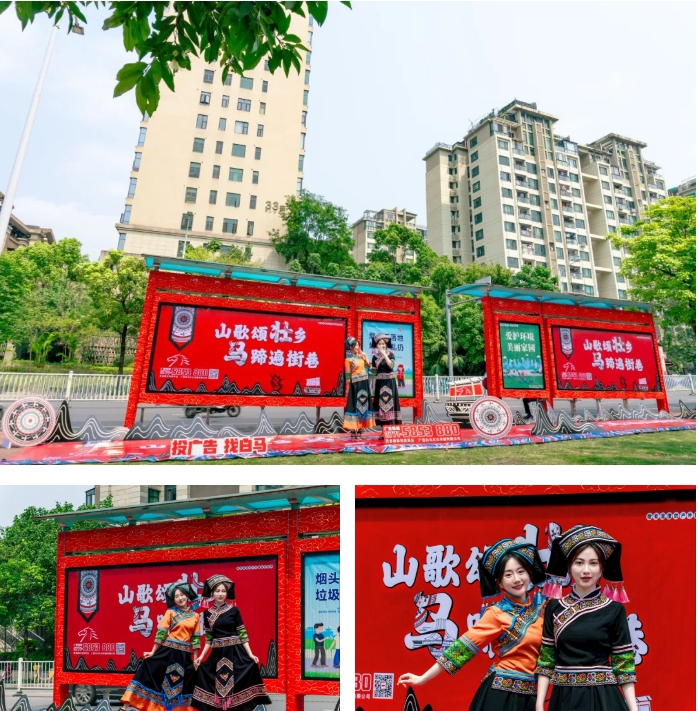 三月三,穿傳統(tǒng)服飾過(guò)節(jié)必不可少。瞧,公交候車(chē)亭也穿上了節(jié)日的盛裝,鮮艷的色彩、精美的圖案,濃濃的民族風(fēng)情,為城市增添了一道亮麗的風(fēng)景,營(yíng)造了濃厚的節(jié)日氛圍。圖為賽揚(yáng)傳媒公司員工身著傳統(tǒng)服飾在公交候車(chē)亭旁合影。