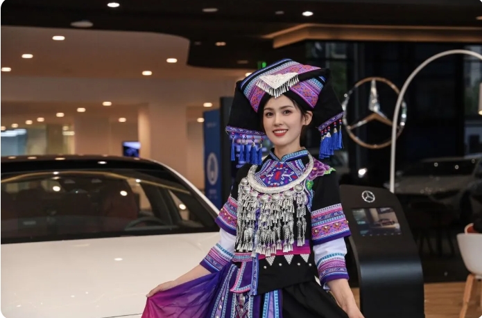 壯族的傳統(tǒng)服飾衣裙顏色為藍(lán)黑色,色澤鮮艷且不易褪色,既耐臟又耐穿,充分體現(xiàn)了壯族人民的智慧和文化,也寄托了壯族人民對(duì)美好生活的向往和追求。圖為康城汽車(chē)集團(tuán)冠星公司員工展示壯族服飾。