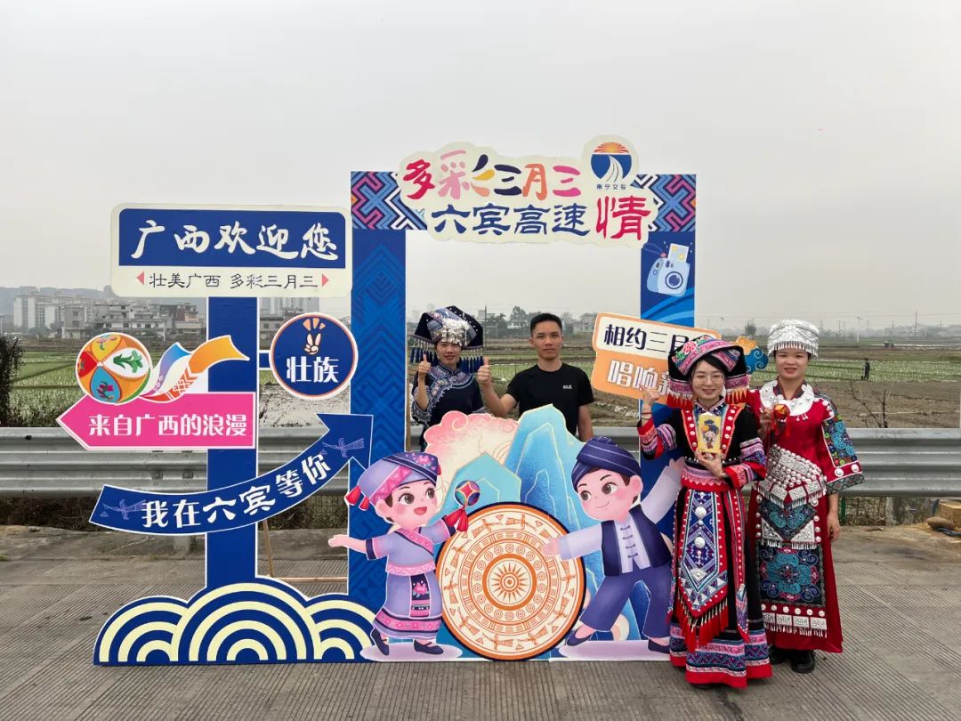 六賓收費(fèi)總站則通過在賓陽南收費(fèi)站設(shè)置“三月三”特色打卡點(diǎn),吸引過往司乘紛紛駐足拍照打卡、發(fā)視頻稱贊,活動(dòng)現(xiàn)場(chǎng)歡聲笑語不斷。