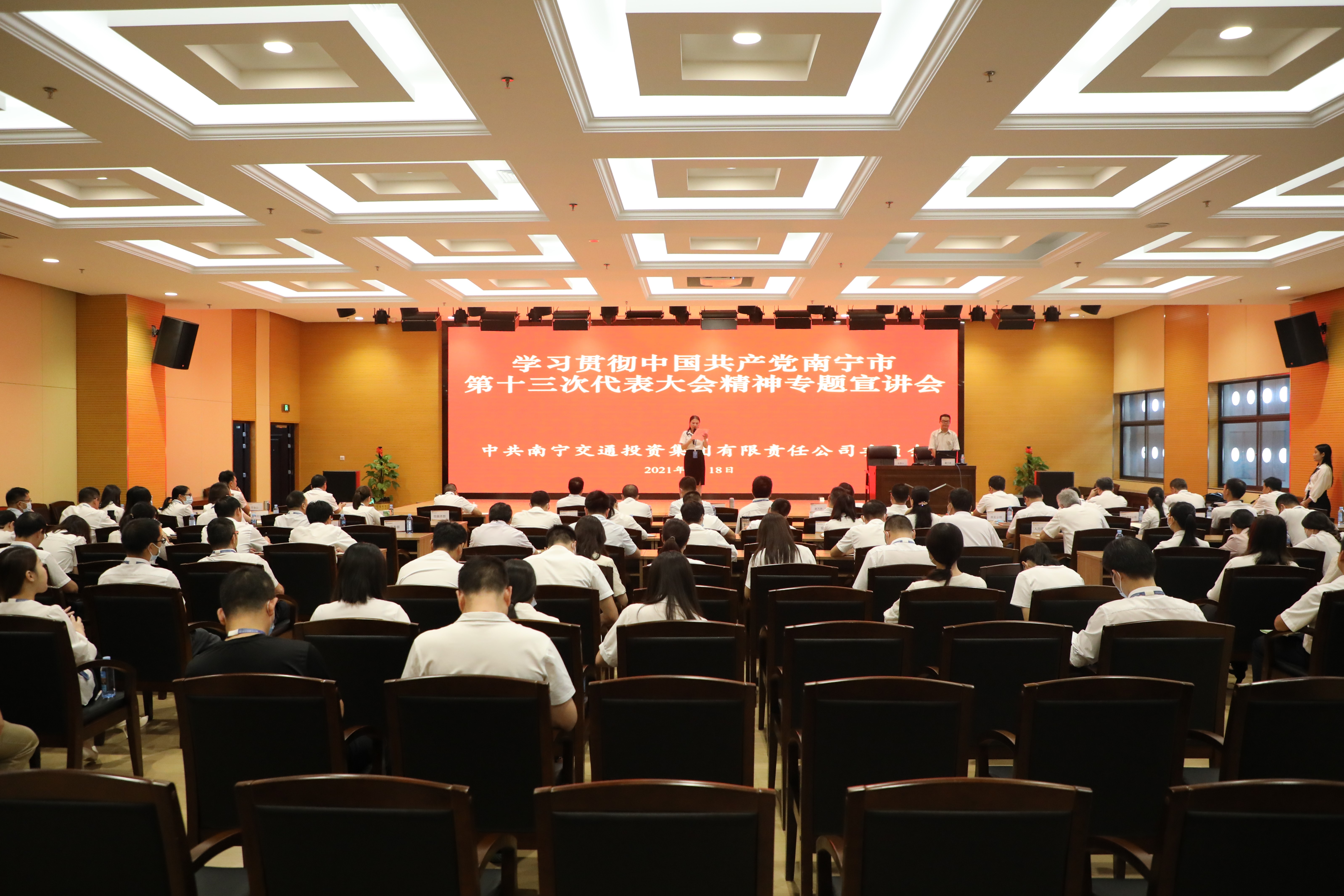 為深刻學習領會南寧市第十三次黨代會精神,引導廣大黨員干部充分認識黨代會的重大意義,9月18日上午,集團公司黨委召開學習貫徹中國共產黨南寧市第十三次代表大會精神宣講會,邀請南寧市黨史學習教育宣講團成員、中共南寧市委黨校黃萬求副教授來到集團公司授課。集團公司領導農明姬、張玉波、謝萬升、林海松、周宏,集團公司總法律顧問、總經理助理,各子公司領導班子成員以及集團總部第一、第二黨支部全體黨員共120多人聆聽宣講。